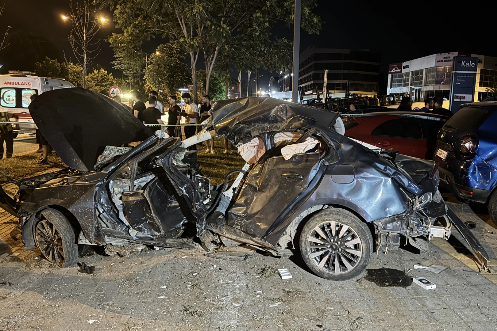 Kazanın şiddetiyle Turna'nın kullandığı otomobil, yol kenarındaki ağaçlara çarpıp taklalar atarak yaklaşık 50 metre sürüklendikten sonra park halindeki 2 araca çarparak durdu.