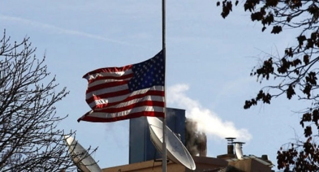 ABD'nin Ankara Büyükelçiliği girişinde üzerindeki bombayı patlatan saldırgan ile bir güvenlik görevlisinin öldüğü saldırı sonrası büyükelçiliğin önündeki ve bahçesindeki ABD bayrakları yarıya indirildi.