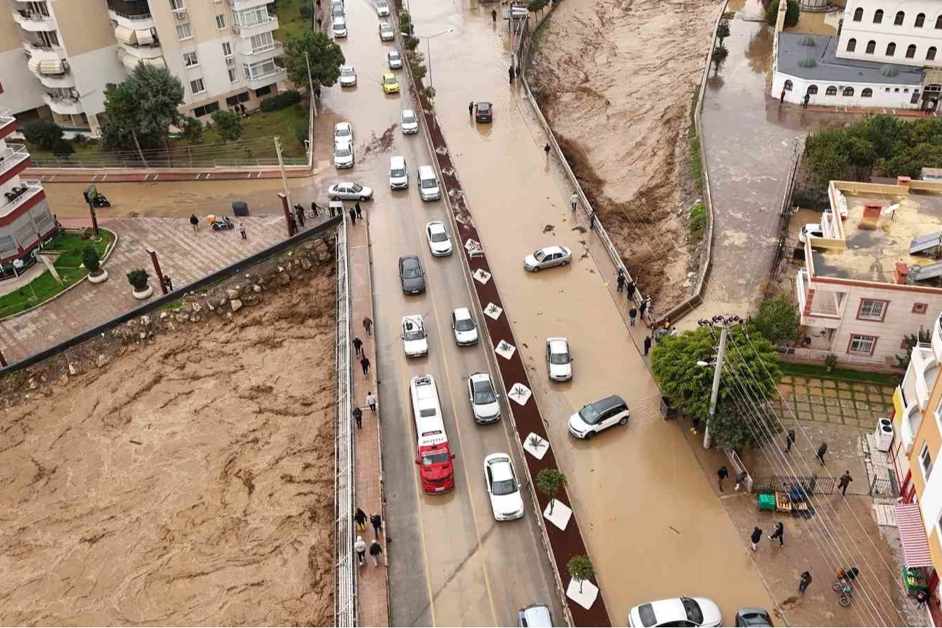 Mersin’de gece yarısından itibaren etkili olan şiddetli yağış, kent genelinde sel ve su taşkınlarına neden oldu. Dere yataklarının taşması sonucu bazı yollar trafiğe kapanırken, çok sayıda ev ve iş yerini su bastı.