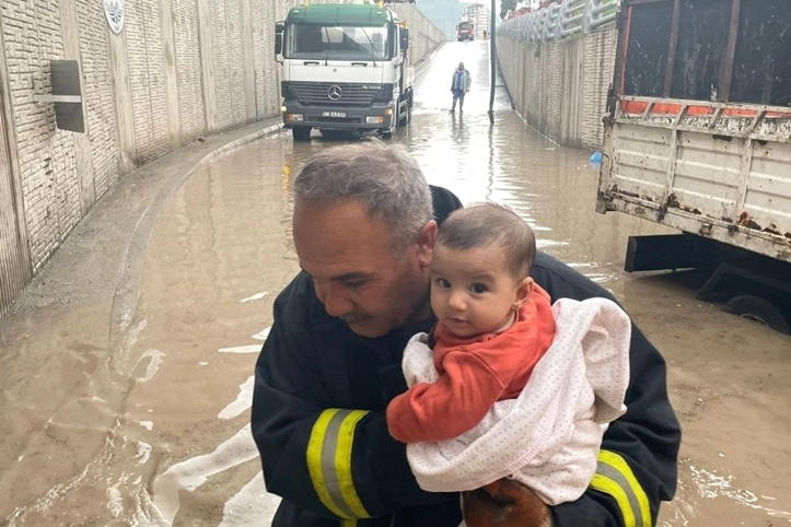 Kayseri'de akşam etkisini gösteren sağanak nedeniyle merkez Melikgazi ilçesi Hulusi Akar Bulvarı'ndaki alt geçitte kamyonet mahsur kaldı. İhbar üzerine olay yerine Kayseri Büyükşehir Belediyesi itfaiye ekipleri sevk edildi. Ekipler, alt geçitte kamyonette mahsur kalan ailenin minik üyesi Elif'i çıkarttı. Kamyonetin sürücüsü ise eşini kucağına alarak çıkardı.