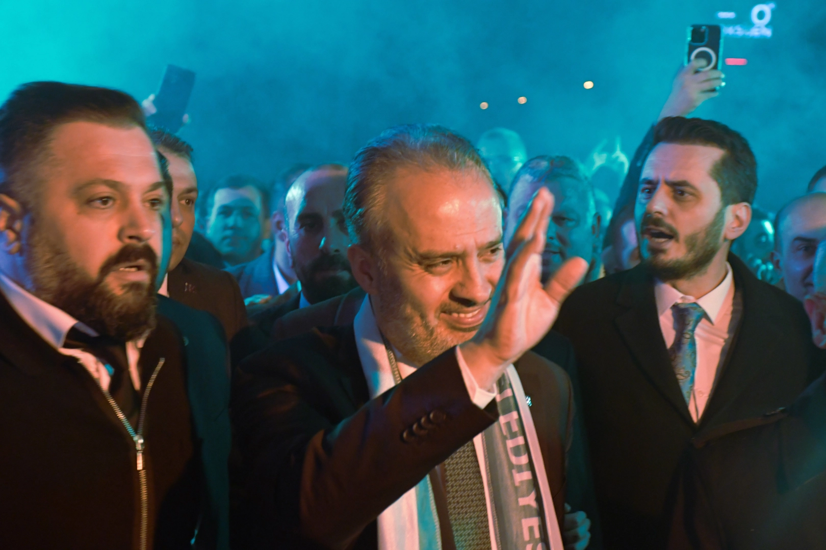 Yakılan meşaleler arasında Bursa'ya gelen Aktaş, yağmur ve soğuk havaya rağmen alana geldikleri için vatandaşlara teşekkür etti.