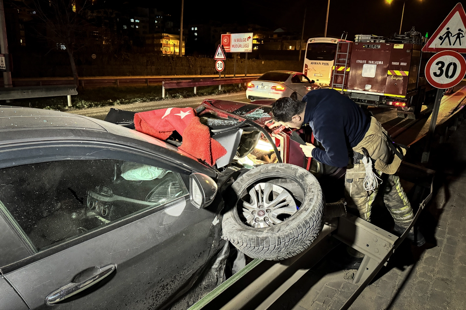 Kazanın şiddetiyle İbrahim Ü'nün kullandığı otomobil, çarptığı aracı bir süre sürükledi.