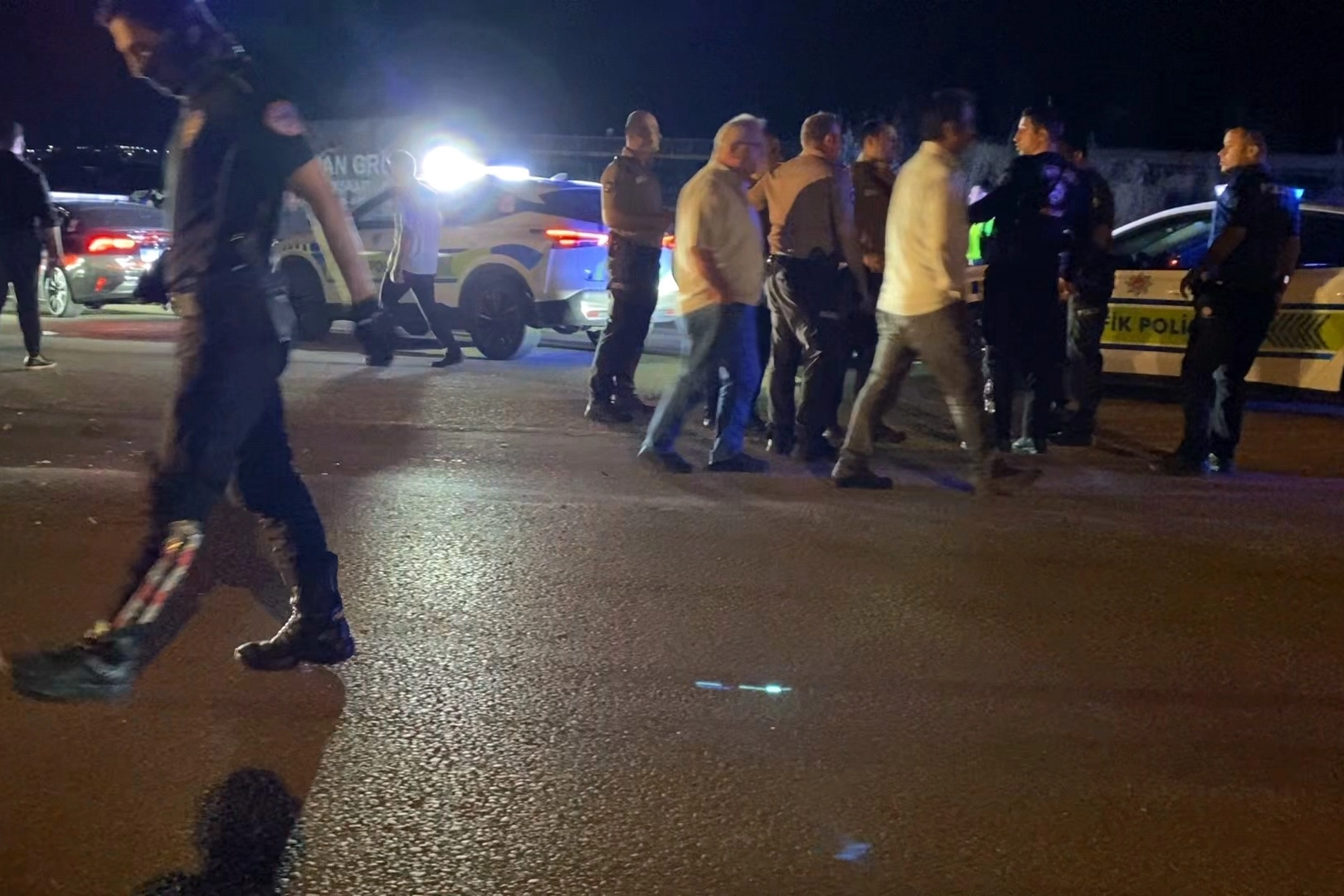 Olay, gece saat 00.00 sıralarında Ertuğrulgazi Mahallesi Yıldırım Caddesi üzerindeki bir düğün salonu önünde meydana geldi. İddiaya göre, 21 yaşındaki Deniz E. idaresindeki otomobil, park halindeki iki araca çarptıktan sonra hızla olay yerinden uzaklaştı. Ancak çarpma sırasında sürücünün aracına ait plaka kaza yerinde düştü. Kazanın ardından olay yerine İnegöl Emniyet Müdürlüğü Trafik Büro Amirliği ekipleri sevk edildi. Ekipler, plakanın sahibi olan Deniz E.'ye ulaşıp olay yerine gelmesini sağladı. Kısa süre sonra kaza nedeniyle zarar gören araç sahipleriyle Deniz E. arasında tartışma başladı. Büyüyen tartışma kısa sürede kavgaya dönüştü. Olay yerine gelen şahısların yakınlarının da dahil olmasıyla kavga büyüdü. Polis ekipleri kavgayı ayırmakta zorlanınca takviye ekip çağrıldı. Kavgaya karışan Süreyya G. (44), Ferdi G. (23), Halil G. (25), Oğuzhan G. (24) ile kazaya karışan araç sürücüsü Deniz E. (21) ve ağabeyi Oğuzhan E. (24) gözaltına alındı. Şüpheliler ifadeleri alınmak üzere karakola götürüldü. Polis, olayla ilgili tahkikat başlattı.