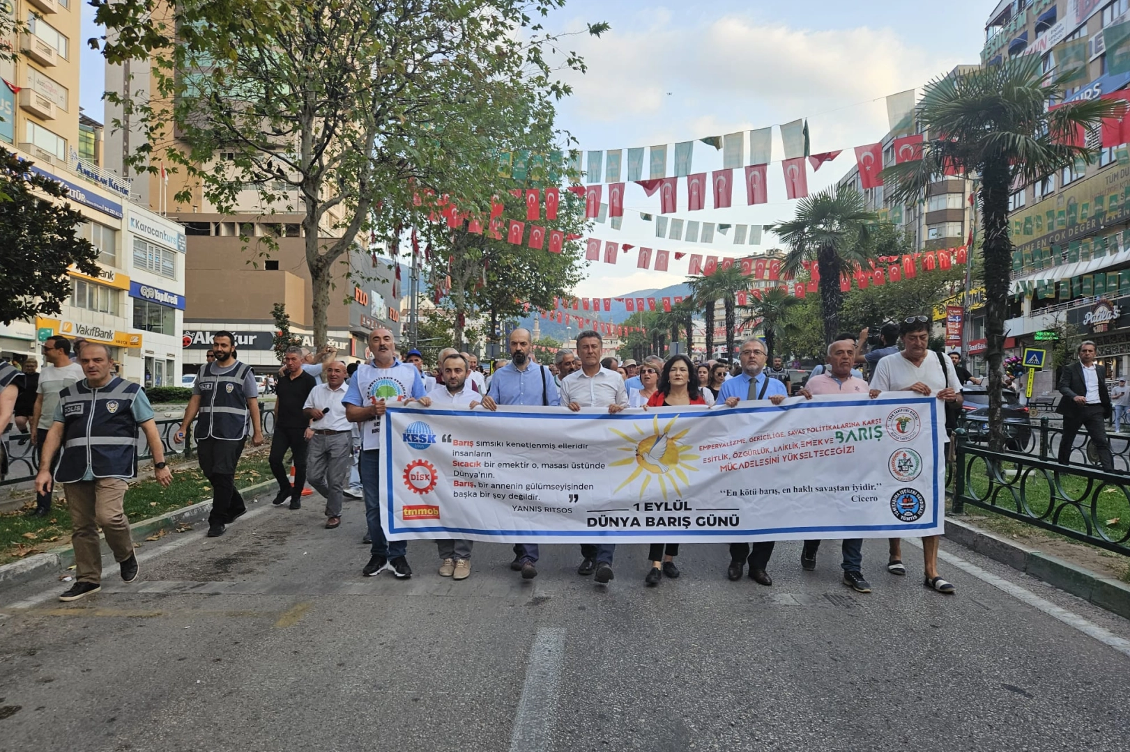 DİSK, KESK, TMMOB Bursa İKK, Bursa Tabip Odası, Bursa Barosu, TÜMTİS, 1 Eylül Dünya Barış Günü dolayısıyla yürüyüş ve basın açıklaması düzenledi. Şehreküstü Meydanı'nda başlayan yürüyüş, Kent Meydanı'nda sona erdi.
