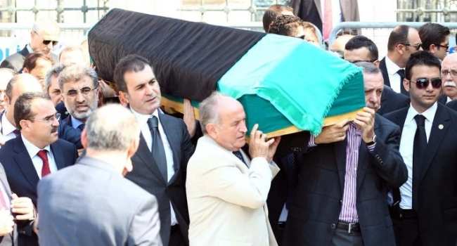 Camiye cenaze arabasıyla gelen Erdoğan, annesinin cenazesini musalla taşına kadar omuzunda taşıdı.