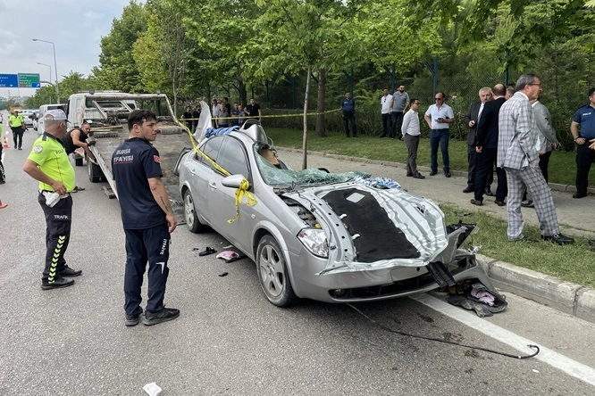 Beton mikserinin üzerine devrilmesi sonucu hurdaya dönen otomobilde bulunan baba ve iki oğlu hayatını kaybetti