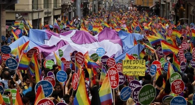 Öte yandan İngiltere Konsolosluğu'nun Twitter'daki adresinden yayınlanan mesajda, İngiliz bayrağının altında LGBTİ bireyleri temsil eden gökkuşağı bayrağının dalgalandığı bir fotoğrafla birlikte, "Bugün Taksim'de gerçekleşecek LGBT Onur Yürüyüşü'nü @UKinTurkey olarak destekliyoruz" denildi.