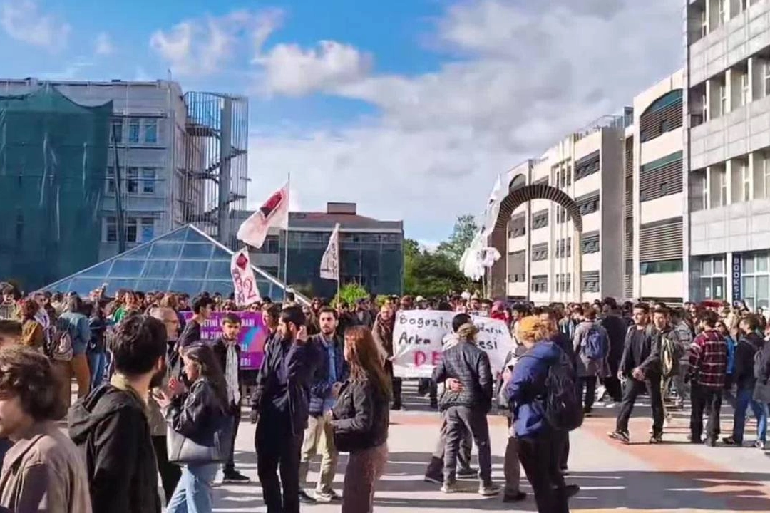 “Boğaziçi iktidarın arka bahçesi değil”, “Erkek şiddetini ve istismarı meşru kılan zihniyete üniversitemizde yer yok” yazılı pankartlar açan öğrenciler, “Nureddin defol, bu kampüsler bizim”, “Şeriata, faşizme, karanlığa geçit yok” sloganları attı.