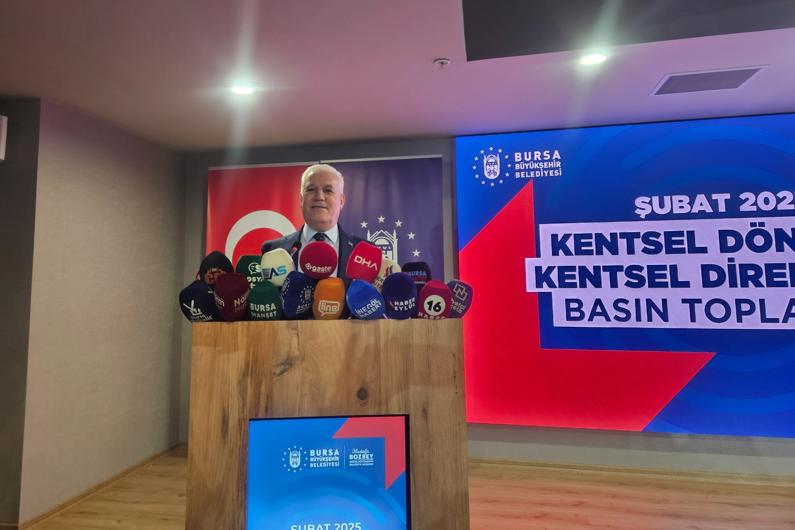 Bursa’yı yaşanabilir, dirençli ve sürdürülebilir bir geleceğe taşımanın en büyük öncelikleri olduğunu söyleyen Mustafa Bozbey, kentsel dönüşümü sadece fiziksel bir yenilenme olarak değil, yeşil alanları, sosyal donatıları, ulaşım altyapısını ve toplumsal dayanışmayı içeren kapsamlı bir süreç olarak gördüklerini belirtti. Hedeflerinin insan odaklı, doğayla uyumlu ve kültürel mirası koruyan projeler hayata geçirmek olduğunu ifade eden Bozbey, tarih boyunca birçok medeniyete ev sahipliği yapan Bursa’daki tarihi ve kültürel mirasın zaman içindeki plansız yapılaşma ve depreme dayanıksız yapı stoku nedeniyle risk altında olduğunu dile getirdi. Bu nedenle Bursa’da insan odaklı ve sürdürülebilir bir kentsel dönüşüm modelini oluşturmayı hedeflediklerini anlatan Bozbey, “Bursa, aktif fay hatlarının kesiştiği bir noktada yer alıyor ve tarih boyunca da birçok yıkıcı deprem yaşamıştır. Kentimizin deprem riskine karşı dayanıklı hale getirilmesi, sadece bugünün değil, geleceğin Bursa’sı için de kritik bir öneme sahiptir. Bu doğrultuda bilimsel veriler ışığında kentimizin risk haritalarını oluşturarak kentsel dönüşüm çalışmalarını hızlandırdık. Depreme dayanıklı Bursa, öncelikli hedefimizdir. Hedeflerimiz, riskli bölgelerin belirlenmesi ve önceliklendirilmesi, zemin etütleriyle yapı güvenliğinin artırılması, kent dokusuna uygun, sürdürülebilir dönüşüm projelerinin hayata geçirilmesi, vatandaşlarımızın haklarını koruyan, uzlaşı odaklı bir dönüşüm modeli oluşturulmasıdır. Bu kapsamda kentimizin her köşesinde kapsamlı bir dönüşüm seferberliği başlattık” diye konuştu. “Bursa'da, varlığı tespit edilmiş 9 fay hattı bulunuyor”