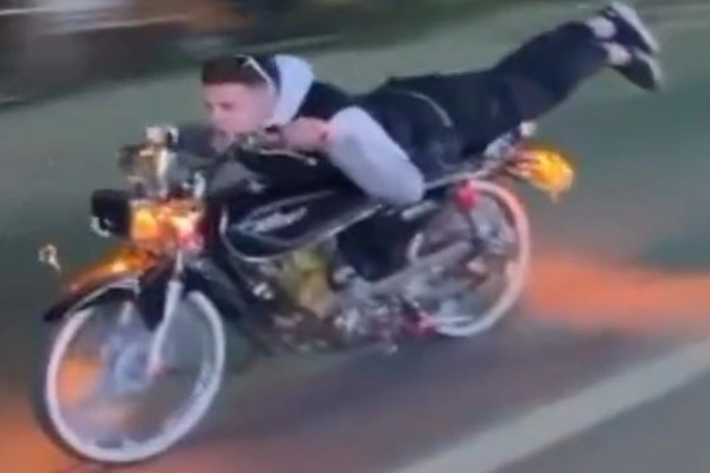 Edinilen bilgiye göre, hem kendi canını hiçe sayan hem de diğer sürücülerin güvenliğini tehlikeye atan motosikletli, "bu kadar da olmaz" dedirtti.