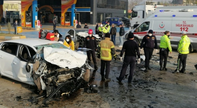 Kazada, sürücülerden Mehmet Karadağ olay yerinde yaşamını yitirdi. Bu araçta bulunan Karadağ'ın eşi Mülten Karadağ, torunları Yusuf (10) ve Yunus Kılınç (4) ile diğer sürücü Osman A. ise yaralandı.