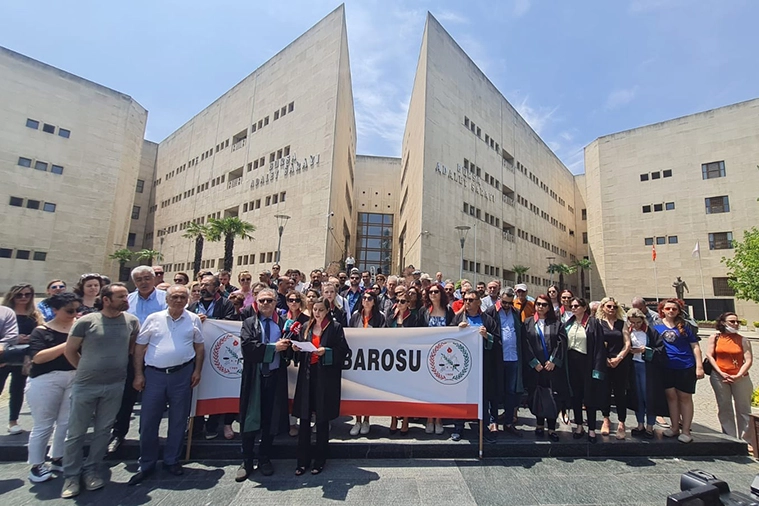 Bursa Adalet Sarayı önünde yapılan basın açıklamasına, avukatların yanısıra sivil toplum örgütleri, akademik meslek odaları ve sendikaların temsilcileri de katıldı. Bursa Barosu Başkanı Av. Metin Öztosun ile önceki baro başkanların Av. Yahya Şimşek’in de bulunduğu basın açıklamasını Başkan Yardımcısı Av. Aslı Evke Yetkin okudu.