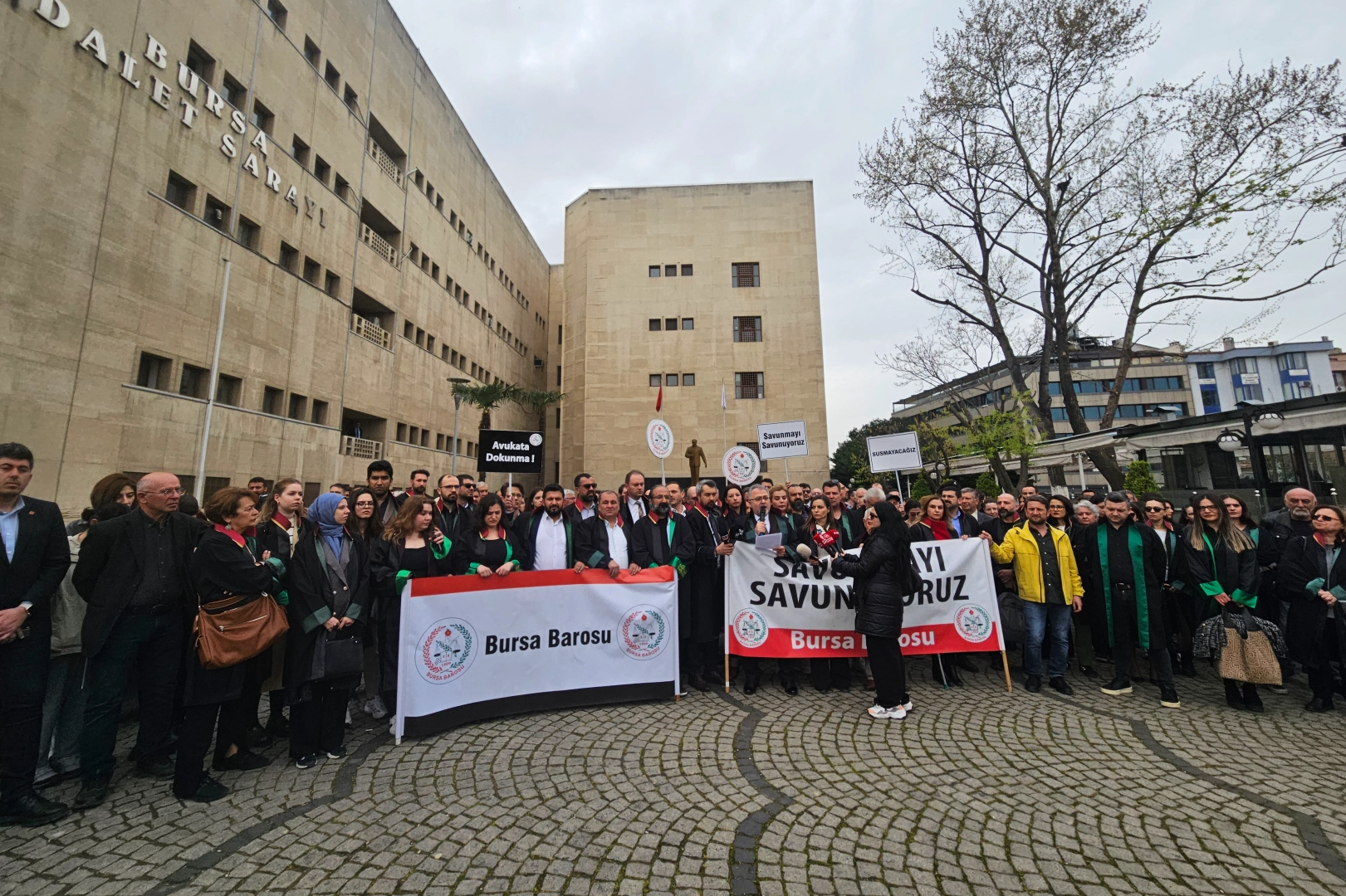 Saat 14.00'de Adliye önünde yapılan basın açıklamasına Bursa Baro Başkanı Av. Metin Öztosun, Baro üyeleri, sivil toplum kuruluşları temsilcileri ve vatandaşlar katıldı.