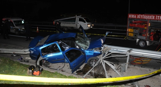 Emrah Karalı'nın kullandığı 16 ZM 936 plakalı otomobil aşırı hız nedeni ile Karalı'nın direksiyon hakimiyetini kaybetmesi sonucu yol kenarındaki bariyerlere çarptı. Otomobilin ön kısmından giren bariyerler arka kısmından çıktı. Feci kazada, Polat Tarı (24) ve Onur Can olay yerinde can verdi.