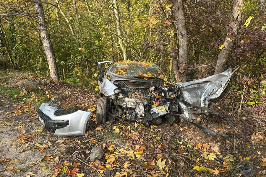 Kazalarda otomobil adeta hurdaya dönerkeni tırın dorsesinde büyük hasar meydana geldi.