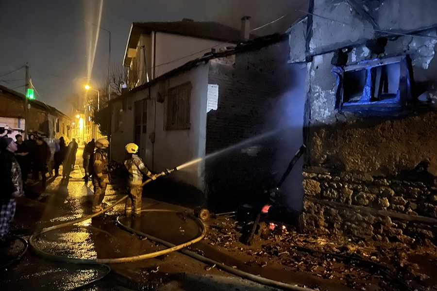 Ekiplerin müdahalesiyle diğer evlere sıçramadan yaklaşık bir saatte söndürülen yangında, ahırdaki 10 büyükbaş hayvan telef oldu.