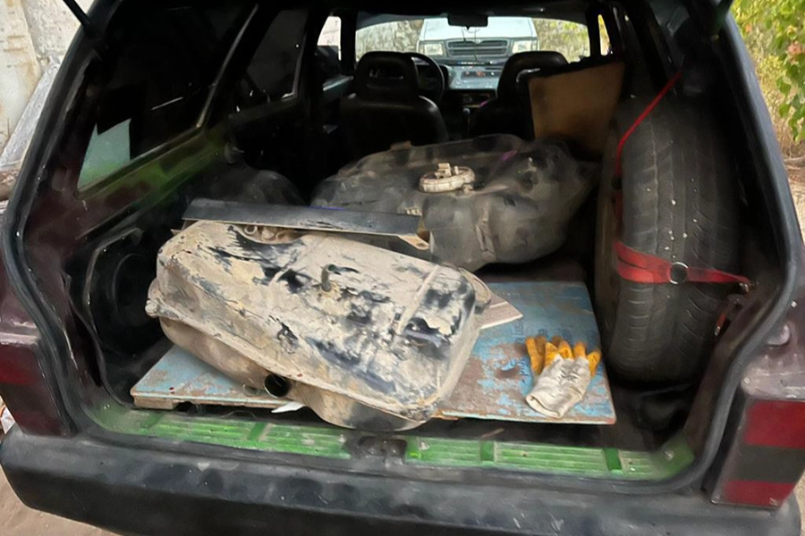 Şüphelilere ait araçta yapılan aramalarda 1 yakıt deposu, 10 demir profil ve 5 PVC pencere ele geçirildi.