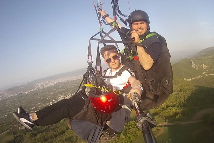 Uçuş sırasında havada kendisini görüntüleyen Keskin, "Evet arkadaşlar Uludağ'dan çıktım. 2 bin 230 metreden fabrikaya uçarak gidiyorum." dedi.