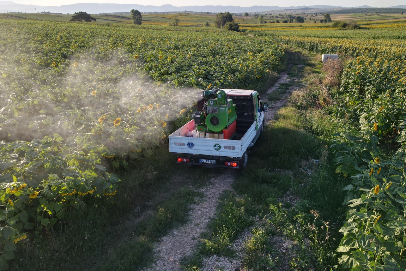 Bursa’da 170 bin dekar alanda ayçiçeği üretimi yapılırken, çayır tırtılı popülasyonunun 6 bin dekarlık alanda görüldüğü tespit edildi. Tarım İl Müdürlüğü ve ilçe belediyelerinin desteğiyle sürdürülen ilaçlama çalışmalarına, Büyükşehir Belediyesi de Tarım A.Ş. bünyesindeki ilaçlama araçlarıyla katılım sağlıyor.