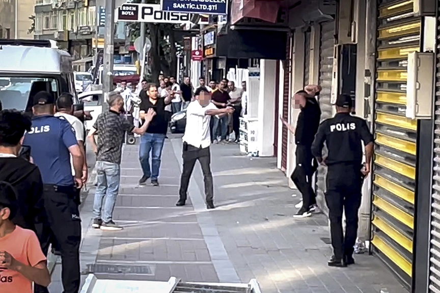 Kaldırımda bir binanın kenarında duran ve kadının yanından ayrılmasına izin vermeyen Raşit A, başına dayadığı silahı bırakmaya ikna edilemeyince polis tarafından vurularak etkisiz hale getirildi.