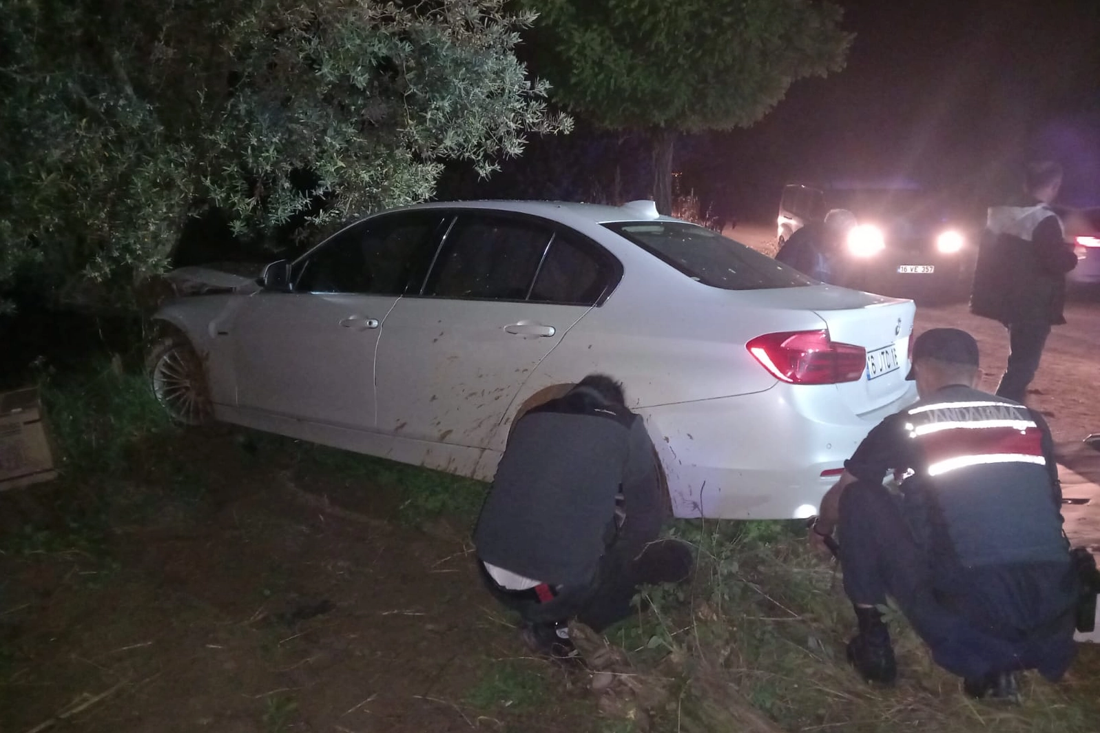 Bu nedenle kontrolden çıkan otomobil yol kenarındaki zeytin ağacına çarparak durabildi.