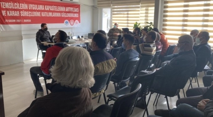 Gıda İş Sendikası Bursa Bölge temsilciliğinde yapılan 'İşçi sağlığı ve iş güvenliği' eğitimine metal, gıda, tekstil ve matbaa sektöründe çalışan işçiler katıldı.