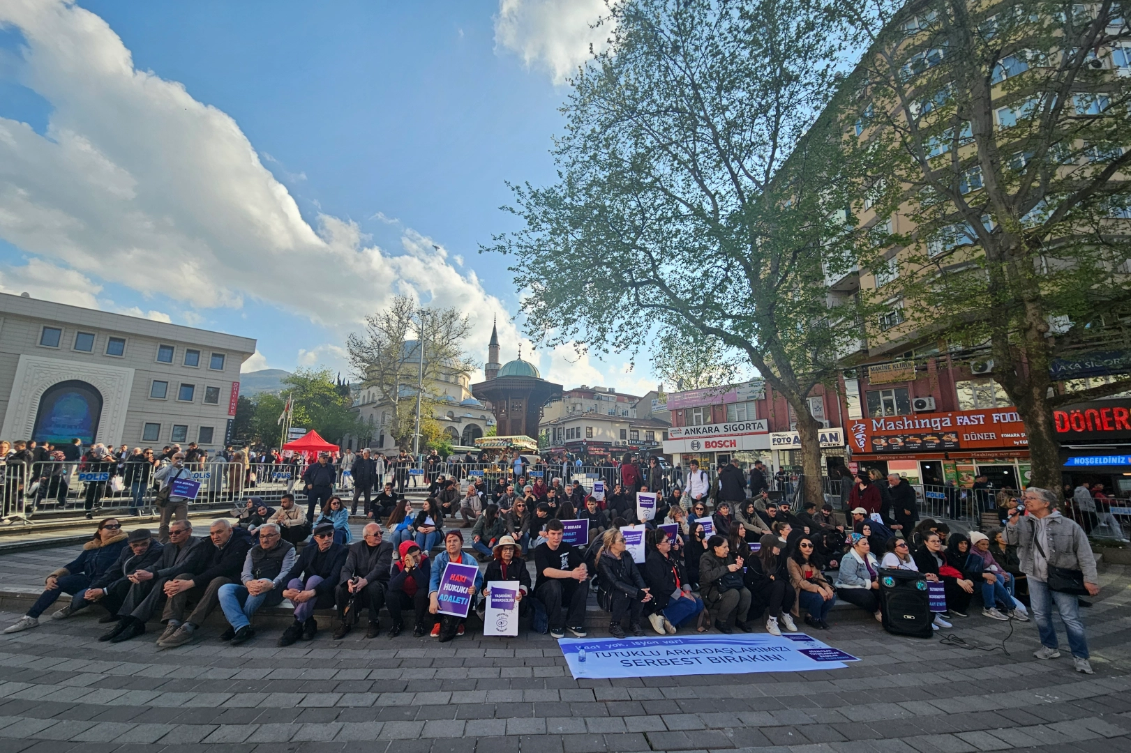 Basın açıklamasının ardından Bursa'da tutuklanan kişilerin isimleri okunarak 'Serbest bırakın' denildi. Ardından oturma eylemi yapıldı.