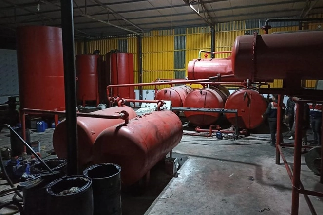 Kaçak tesiste gerçekleştirilen aramalarda 31 bin litre motorin, madeni yağlardan motorin yapmaya yarayan düzenek, tesisat ve çeşitli tanklar bulundu.