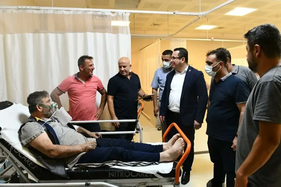 Bu arada Mustafakemalpaşa Belediye Başkanı Mehmet Kanar, işçileri hastanede ziyaret ederek durumları hakkında ilgili bilgi aldı.