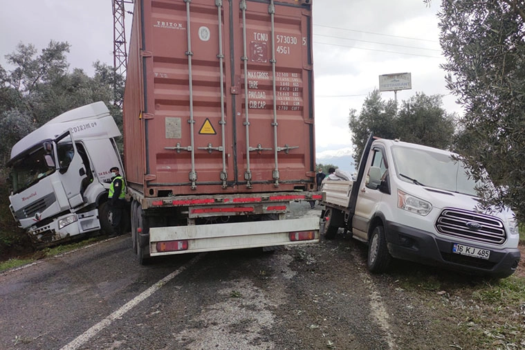 Alınan bilgiye göre, İznik'ten Orhangazi yönüne seyreden ve sürücüsünün kimliği öğrenilemeyen 34 DS 4828 dorse plakalı tır, Dutluca Mahallesi civarında henüz belirlenemeyen bir nedenle kontrolden çıktı. Zeytin ağaçlarına çarpan ve daha sonra yola çıkarak duran tır, yolu tamamen kapattı.