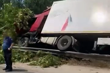 Bursa'nın Kestel ilçesinde kontrolden çıkan tır, bariyerlere çarparak devrildi. Kazada tır sürücüsü yaralandı.