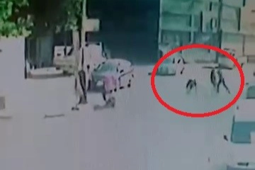 Kurye saldırıdan yara almadan kurtulurken, yaşananlar çevredeki bir iş yerinin güvenlik kamerasına kaydoldu.