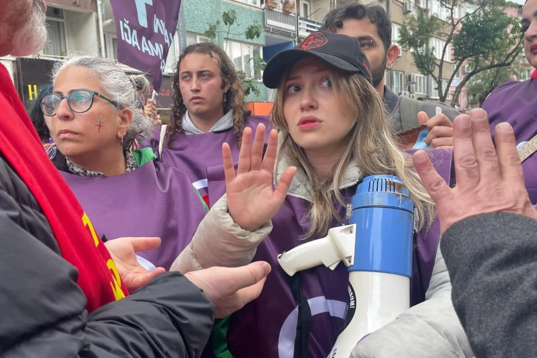 Güvenlik güçleri ile Kadın Savunma Ağı üyeleri LGBTİ bayrağı ile alana alınmadı. Grup ve polis ekipleri arasında bayrak müzakeresi yaşandı.