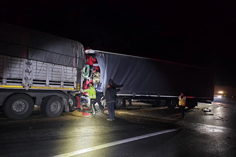 Bursa'dan Bilecik'e seyir halinde olan Şahin İşgören (34) yönetimindeki SPK 233 plakalı tır, Kestel civarında saat 02.30 sıralarında şoförün kontrolünden çıkarak önünde seyreden 42 D 8900 plakalı tıra arkadan çarptı. Şiddetli çarpmanın etkisiyle hurdaya dönen çekici ile dorse arasında sıkışan şoför Şahin İşgören hayatını kaybetti.