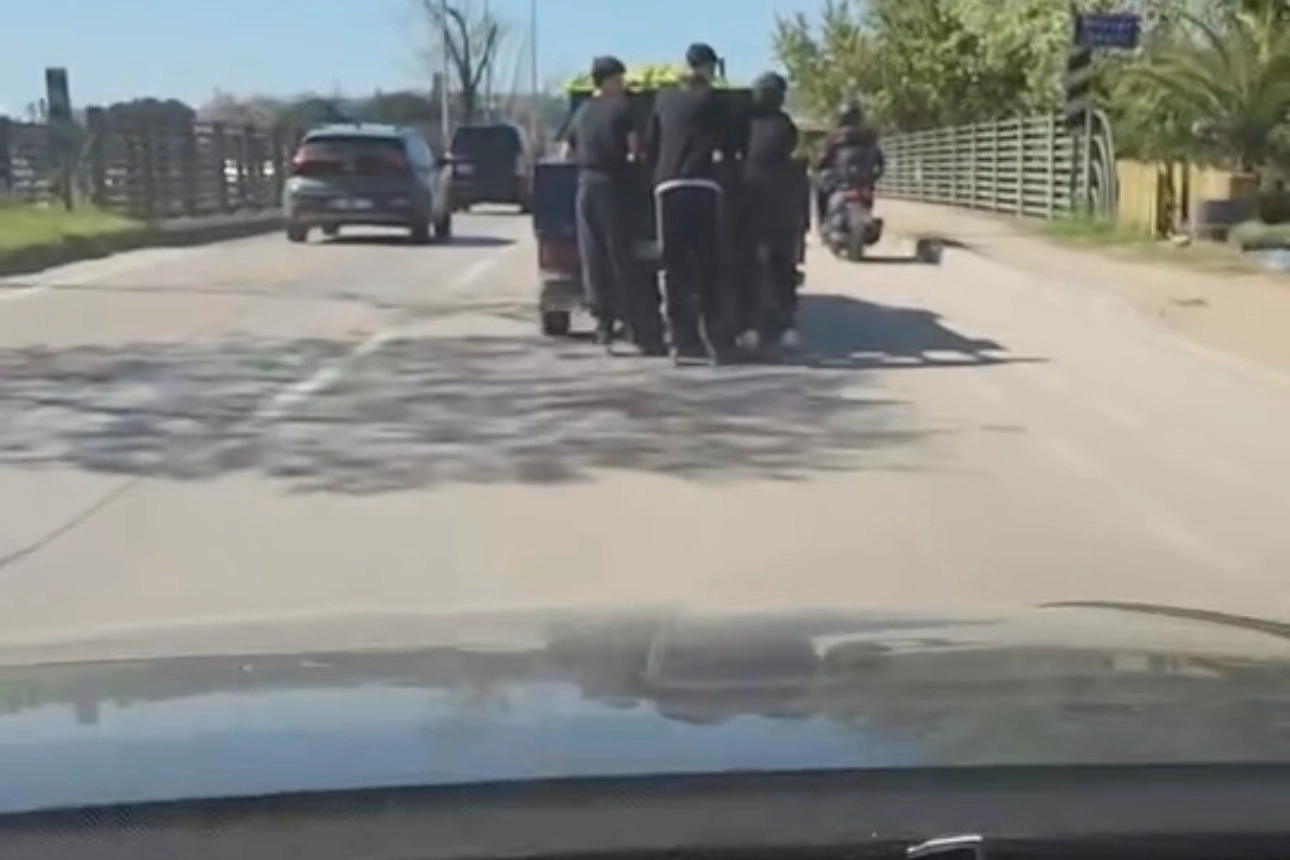 Hem kendi canlarını hem de trafikteki diğer sürücüleri riske atan gençlerin o anları, çevrede bulunan bir vatandaşın cep telefonu kamerasına yansıdı.