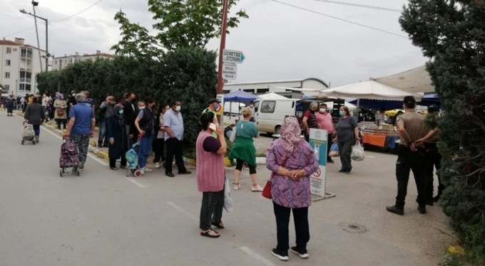 Nüfusun yoğun olduğu bazı semtlerde pazar girişlerinde uzun kuyruklar oluştu.