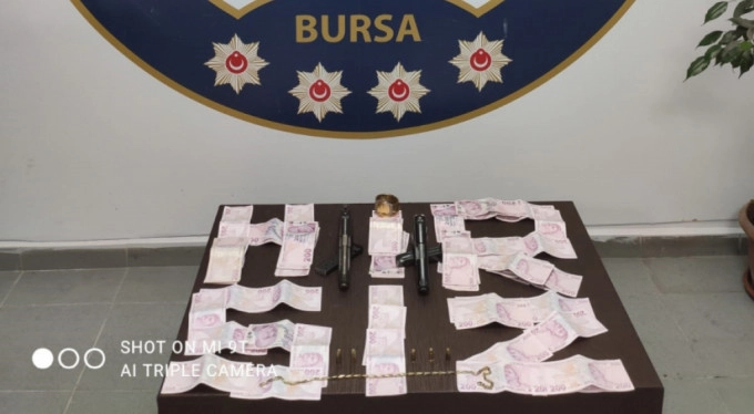 Bursa İl Emniyet Müdürlüğü Asayiş Şubesi Hırsızlık Büro Amirliği ekipleri, Nilüfer ilçesinde E.Ü. (23) ve M.F.Ü'ye (38) ait benzinlikten 650 bin lira değerinde ziynet eşyası ve bir miktar para ile 2 tabanca çalındığı ihbarının ardından çalışma başlattı.