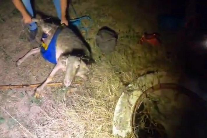 Bursa'nın İnegöl ilçesine bağlı Akhisar Mahallesi'nde gece yoldan geçen bir vatandaş, rögardan küçükbaş hayvan seslerinin geldiğini fark etti.