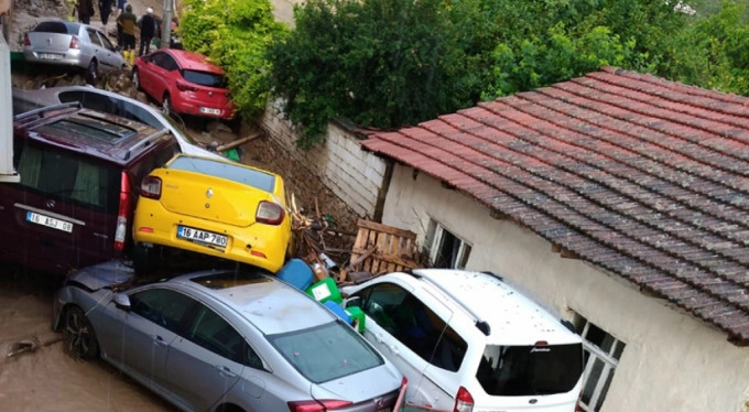 Köydeki onlarca otomobil, traktör, kamyonet ve römork da sel sularından nasibini aldı. Azgın sular yukarıdan aşağıya çok sayıda aracı sürüklerken, araçlar kullanılamaz hale geldi.