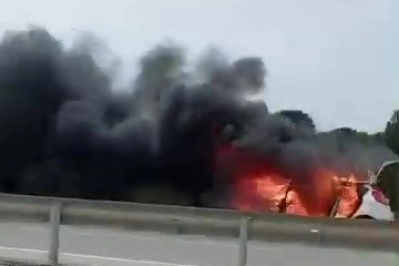 Bursa'da Karacabey-Bandırma istikameti üzerinde seyir halinde olan bir otomobil henüz bilinmeyen bir nedenle alev aldı. Kısa sürede büyüyen yangın, çevredeki sürücülerde paniğe yol açtı.