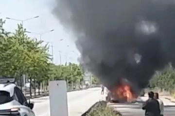 Ankara Bulvarı Narlıdere Mahallesi mevkiinde seyir halindeki bir otomobil henüz bilinmeyen bir nedenle aniden alev aldı. Sürücü, alevleri fark edince aracı yol kenarına çekerek kendini araçtan dışarı attı.