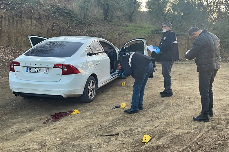 Olay yeri inceleme ekipleri de araçta ve çevrede incelemelerde bulundu.