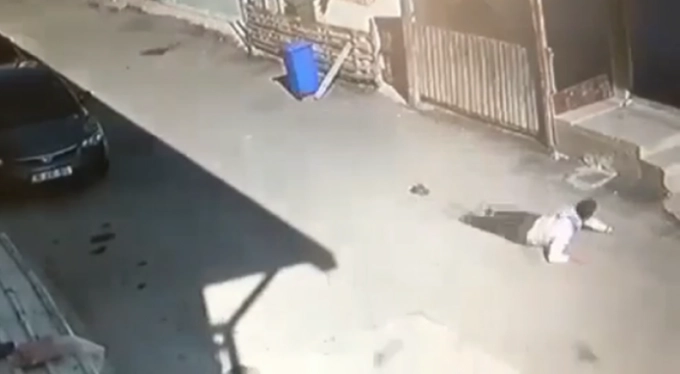Öte yandan olay anları bir iş yerinin güvenlik kamerası görüntülerine yansıdı.