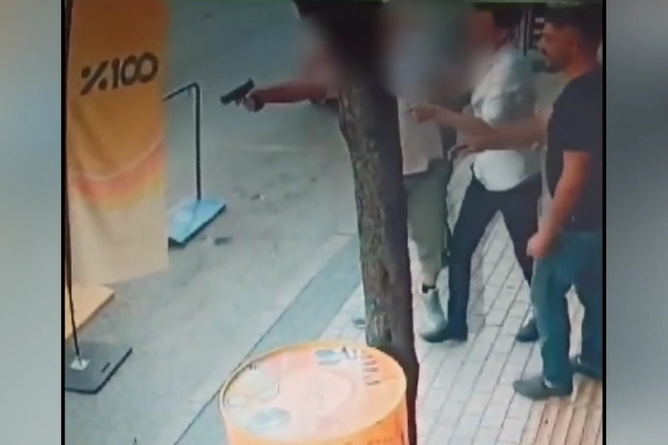 Çevredeki bir iş yerinin güvenlik kamerası kayıtlarında, kavgaya karışanlar arasında itişmeler yaşandığı ve bir kişinin elinde bulunan tabancayı çevredekilere doğrulttuğu görülüyor.