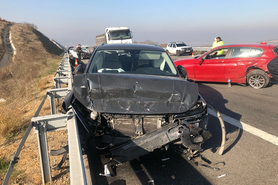 Alınan bilgiye göre, etkili olan yoğun sisin görüş mesafesini düşürdüğü İzmir-İstanbul Otoyolu Bursa Batı Gişeleri yakınlarında 2 tır, minibüs ve 6 otomobilin karıştığı kaza meydana geldi.