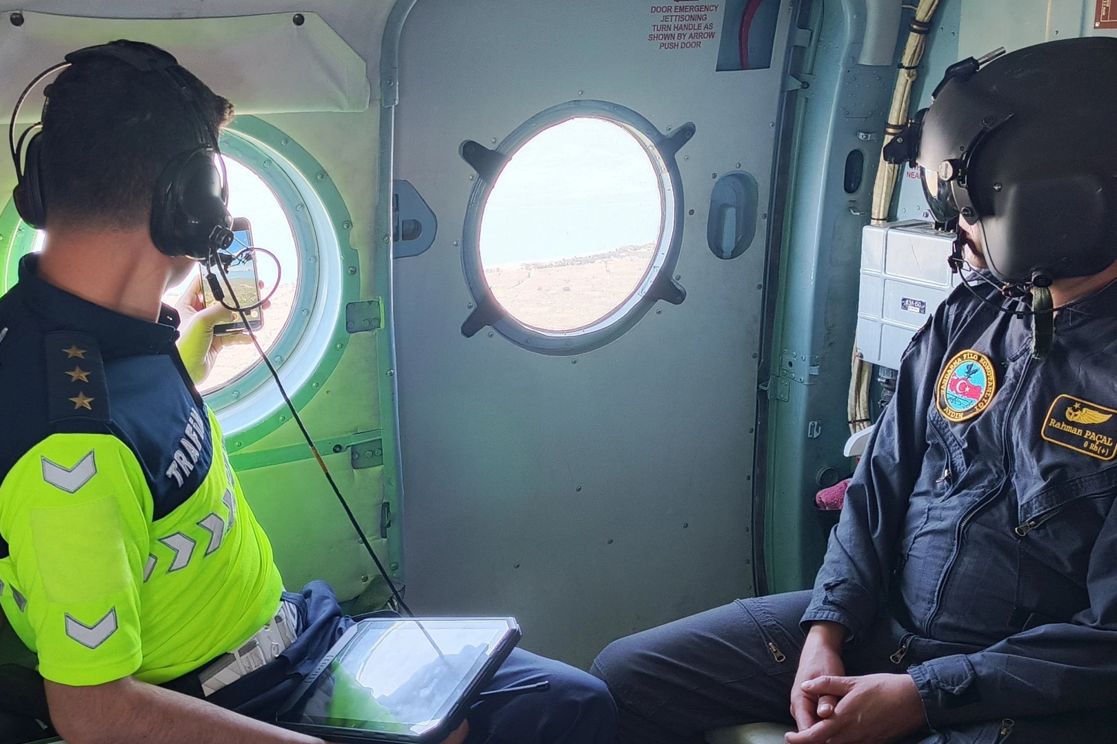 Helikopterli jandarma timlerine dron ile de destek veriliyor.