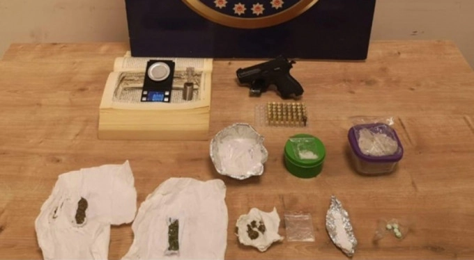 Gözaltına alınan 18 zanlının ev ve araçlarında yapılan aramalarda 805 gram sentetik uyuşturucu, 31 tablet uyuşturucu, esrar, hassas terazi, ruhsatsız iki tabanca ve bir av tüfeği ele geçirildi.