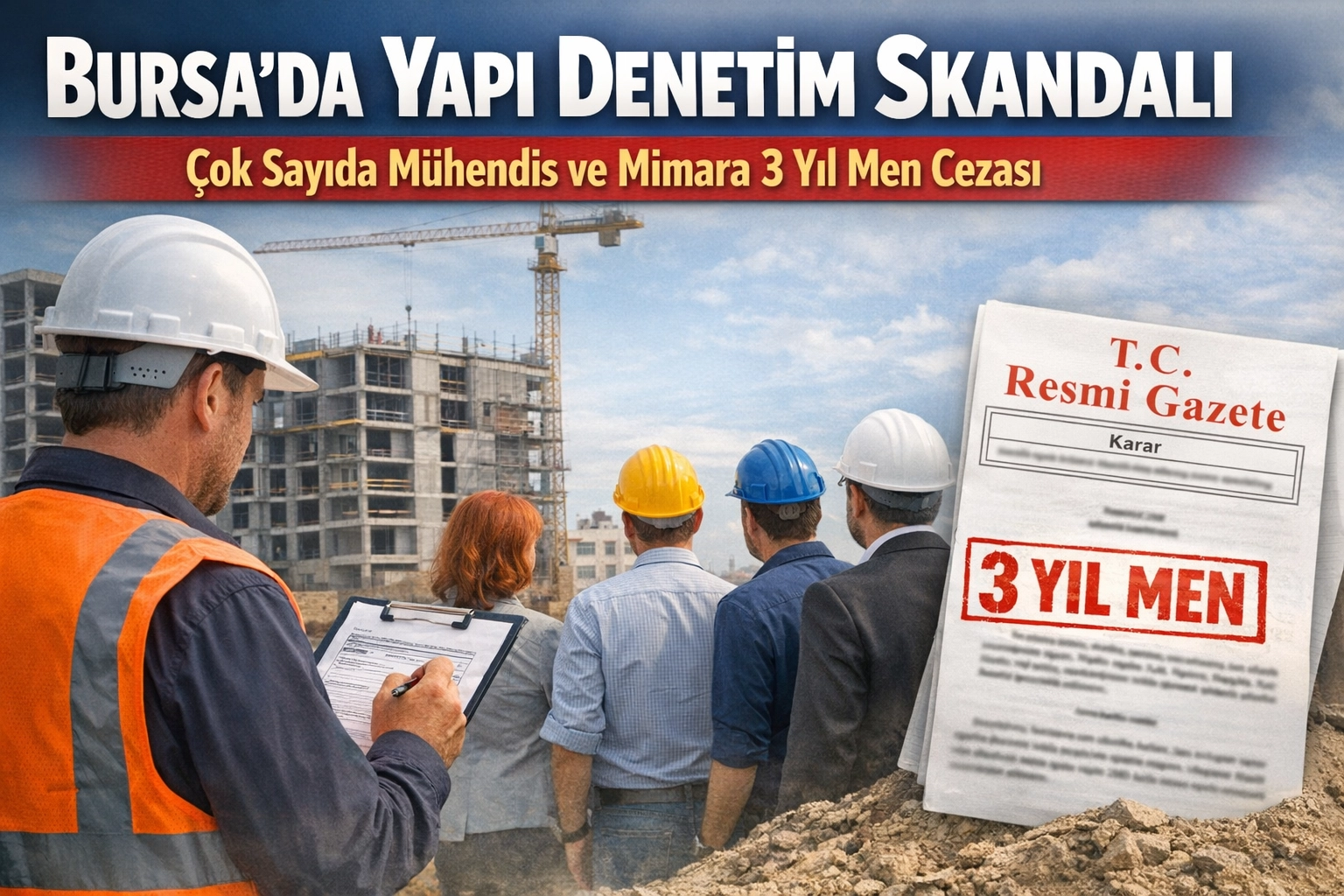 Çevre, Şehircilik ve İklim Değişikliği Bakanlığı, Bursa genelinde faaliyet gösteren yapı denetim firmalarına yönelik yürüttüğü incelemelerin ardından önemli yaptırımlar uyguladı. Bugünkü Resmi Gazete’de yayımlanan kararlara göre, çok sayıda projede denetim görevini yerine getirmediği tespit edilen mühendis ve mimarlar hakkında 3 yıl süreyle mesleki yasak getirildi.