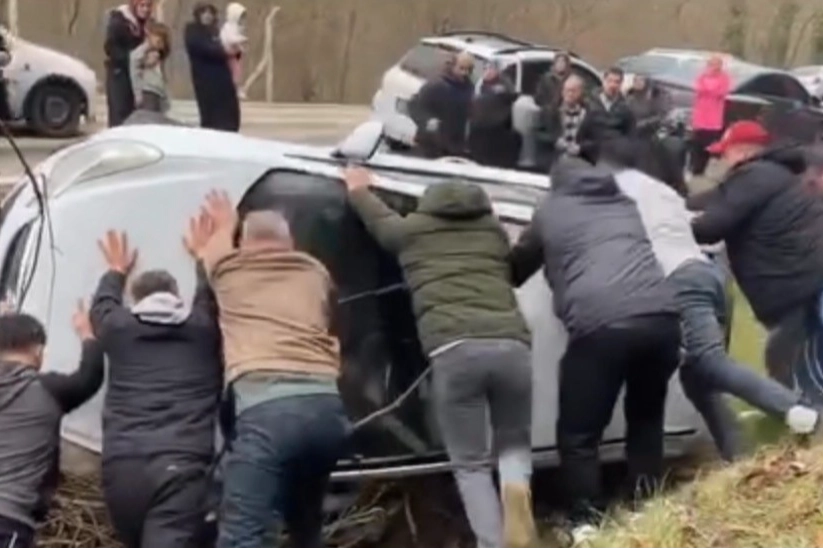 Orhaneli yolu üzerinde meydana gelen trafik kazasında üç araç çarpıştı. Çarpışmanın etkisiyle araçlardan biri kontrolden çıkarak yol kenarına savruldu ve takla attı.