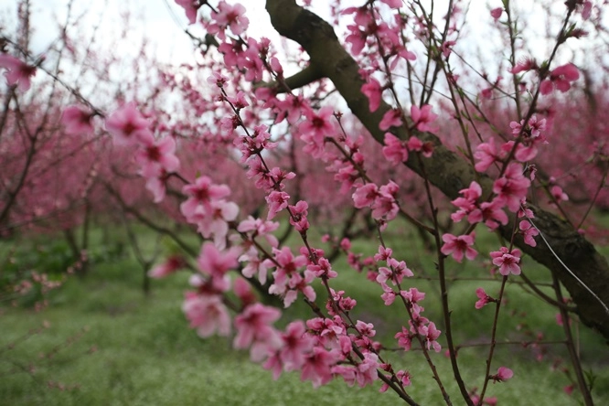 Kentin meşhur şeftalisinin üretildiği bahçelerde ise ağaçlardaki pembe çiçekler ve zeminin yeşilliğiyle ayrı bir güzellik oluştu.